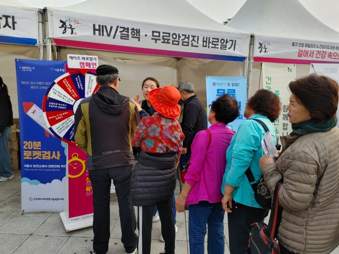 한국에이즈퇴치연맹 서울시지회는 11월 4일 국립극장 문화광장에서 열린 '2023 중구민 가을남산 걷기대회' 행사에 참가한 중구민, 시민 등을 대상으로 에이즈 및 감염병 예방 캠페인 활동을 전개했다. 이번 캠페인 활동은 서울 중구보건소와 연계해 HIV/에이즈(결핵) 홍보부스를 운영해 에이즈 예방 및 인식 개선을 위한 홍보와 결핵 예방 예방 홍보활동도 실시했다.