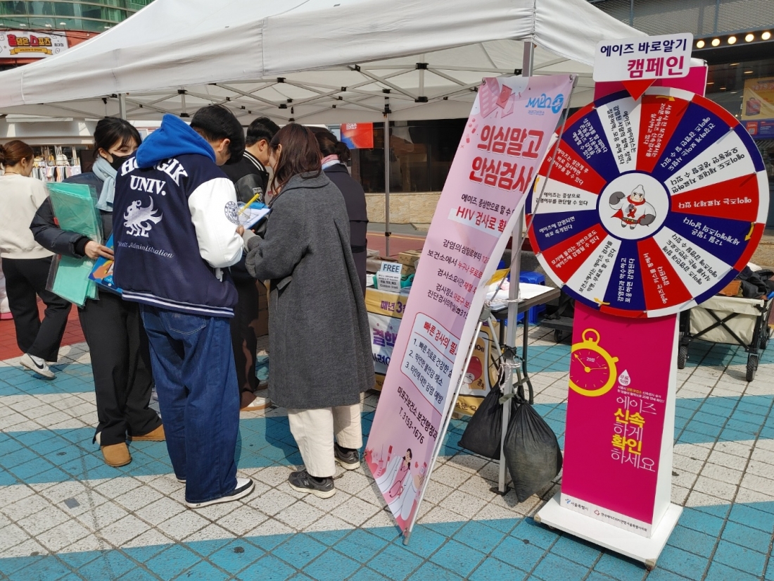 한국에이즈퇴치연맹 서울시지회는 3월19일 홍대 축제거리 퍼포먼스존 레드로드 R4구역에서 시민들을 대상으로 에이즈 및 감염병 예방 캠페인을 펼쳤다. 이번 캠페인 활동은 마포구보건소, 서울서북병원와 연계해 결핵 검진 및 예방 홍보와 에이즈 예방 홍보활동도 함께 실시했다.