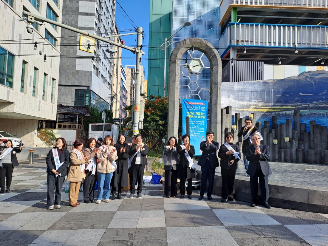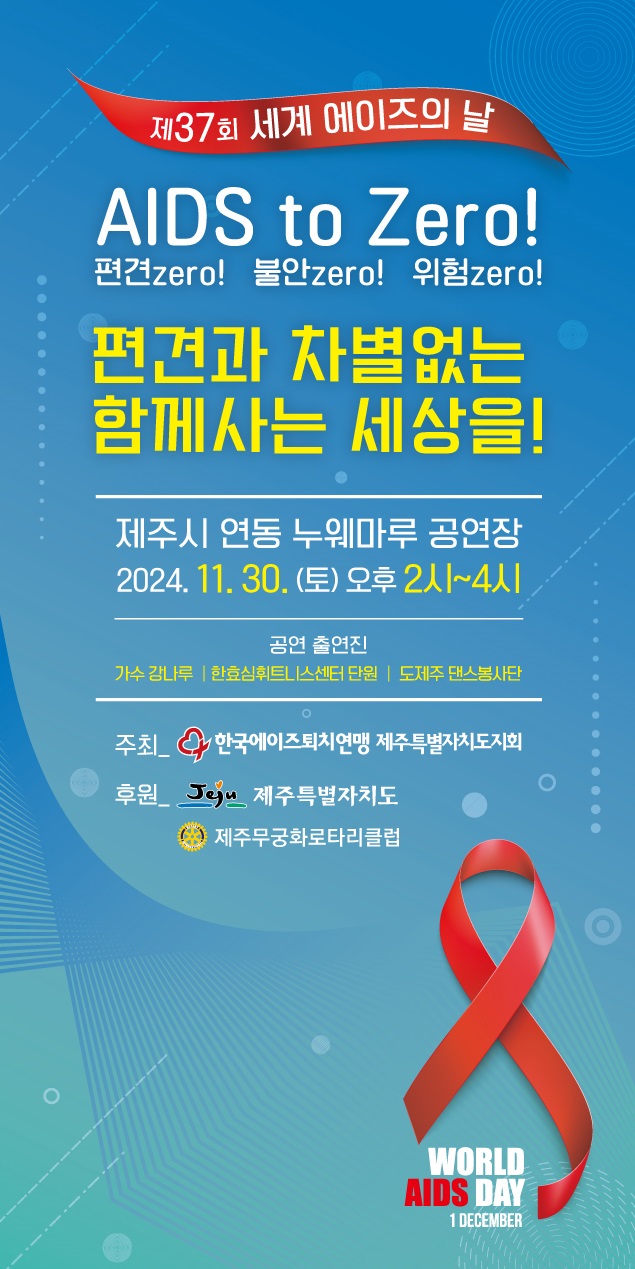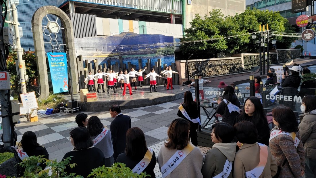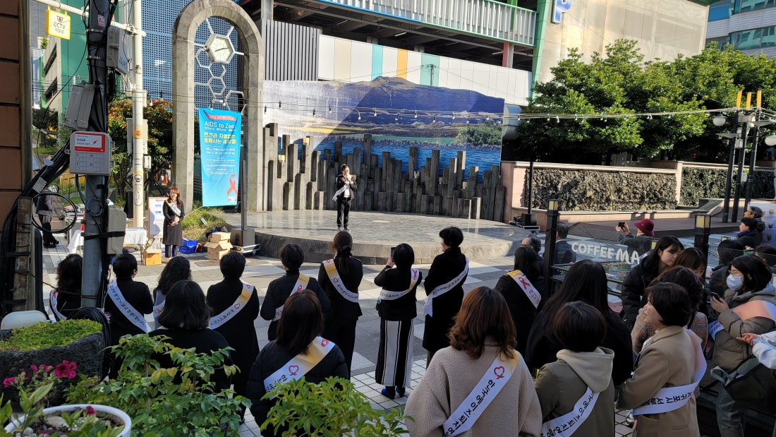 한국에이즈퇴치연맹 제주특별자치도지회는 '제37회 세계 에이즈의 날(12월 1일)'을 맞아 11월 30일 오후 2시부터 제주시 연동 누웨마루 공연장에서 에이즈에 대한 인식개선과 편견 해소를 위한 집중 홍보 캠페인을 진행했다.