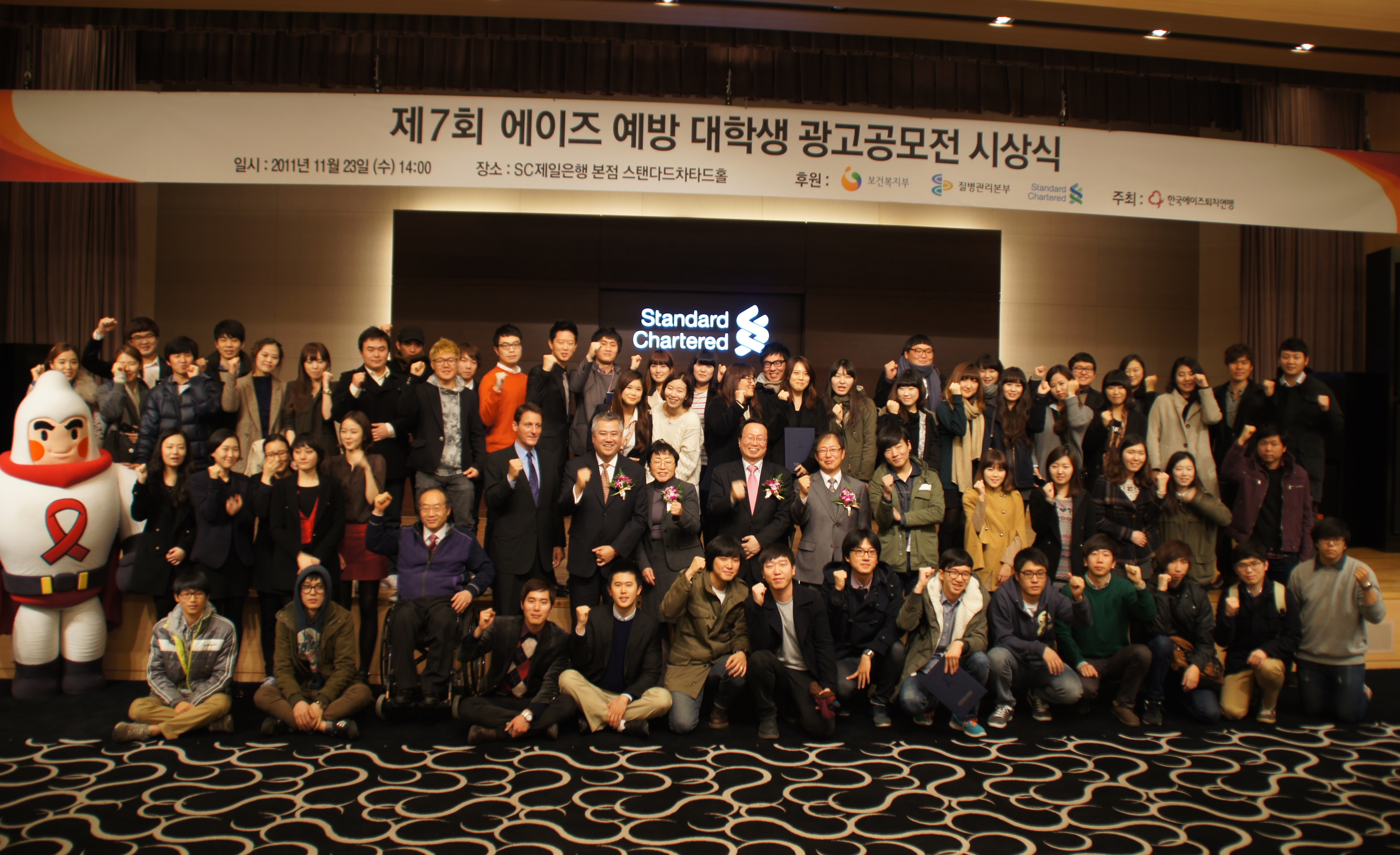 제7회 에이즈예방 대학생 광고공모전은 한국에이즈퇴치연맹(회장 김민기 숭실대 언론정보학과 교수)이 주관하고 보건복지부와 질병관리본부, 한국스탠다드차타드가 후원하는 가운데 지난 11월 23일 한국스탠다드차타드 본점 대강당에서 100여명의 수상자들이 모인 가운데 성황리에 개최되었다.